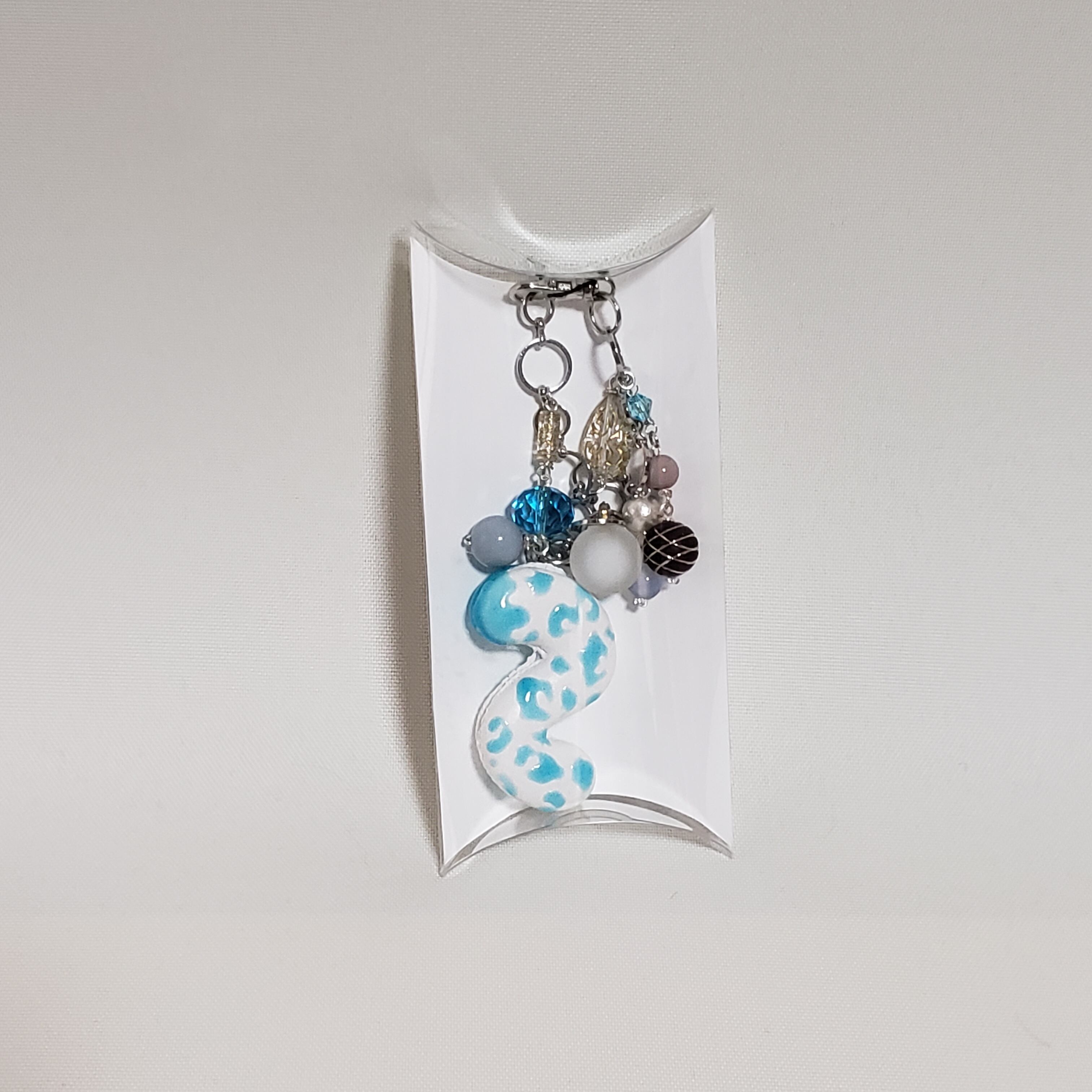 ユキヒョウが好きで好きで仕方のないあるすまわーくすが、先に食べられる方のユキヒョウ尻尾マカロンを作り、この尻尾マカロンの可愛さを半永久的にしたいがために作り出したマカロン風バッグチャーム。