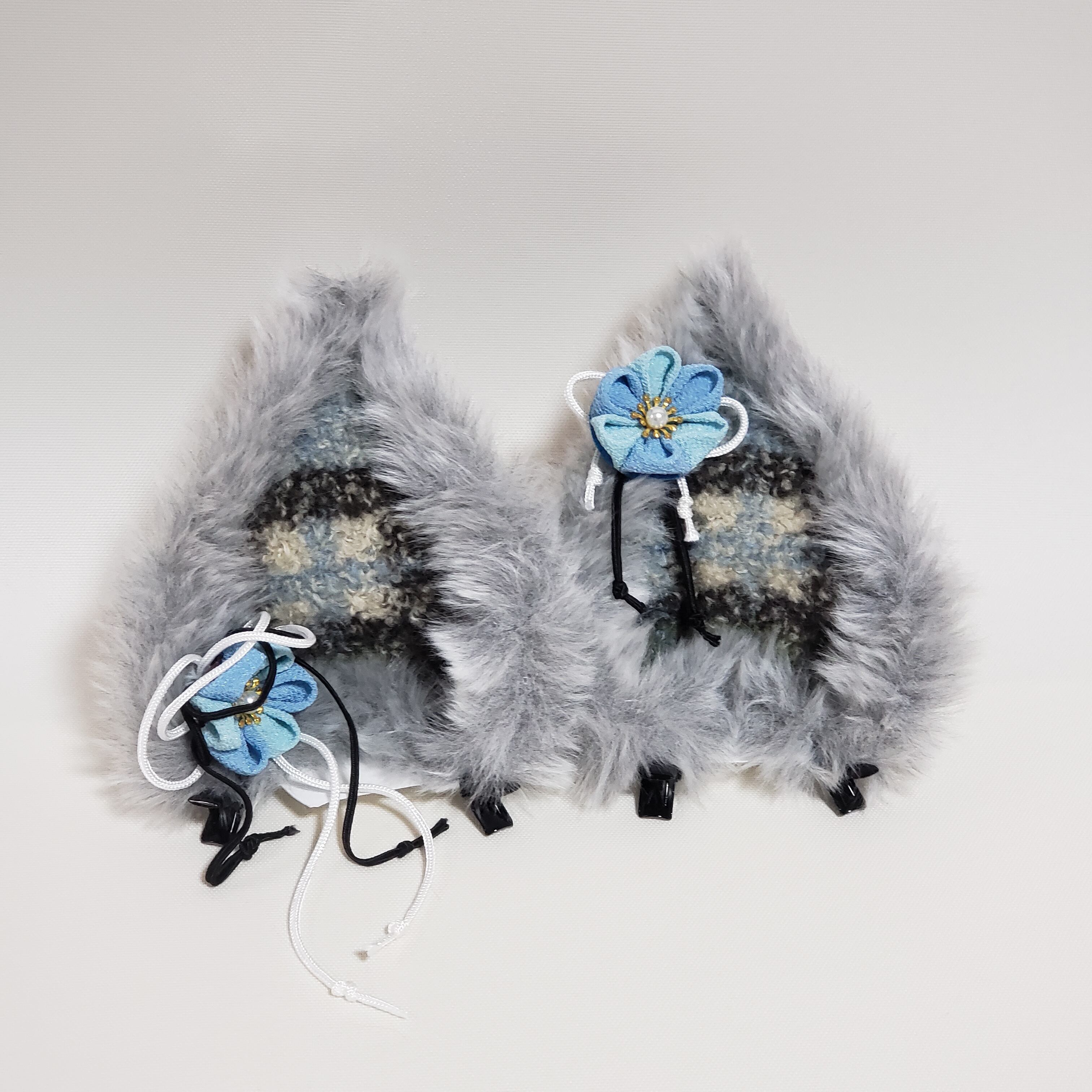つまみ細工とのコラボレーションであるすまわーくす製のけもみみとあわせてみました。
